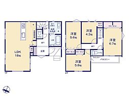 | 間取り | 4LDK 間取り内訳:リビングダイニングキッチン 18帖(1階)・和室 4.5畳(1階)・洋室 5.2帖(2階)・洋室 6帖(2階)・洋室 7.2帖(2階) |