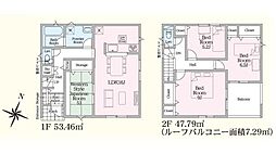 • 1階はゆったりとした15帖のLDKがあり快適な空間が広がっています。和洋室も設けられており様々な用途で利用可能です。2階には3つのベッドルームが配置されており収納スペースも豊富です。