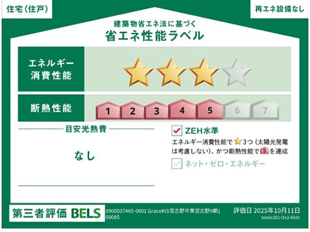 この物件の省エネ性能がわかる「省エネ性能ラベル」です。省エネ性能ラベルは2024年4月以降に建築確認申請した物件などで表示しています。