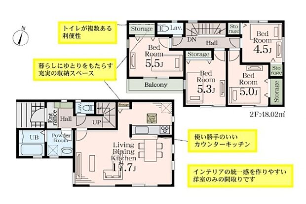 間取り内訳:リビングダイニングキッチン 17.7帖(1階)