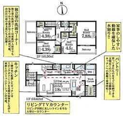 | 間取り | 4LDK 間取り内訳:リビングダイニングキッチン 18帖(1階)・洋室 7帖(2階)・洋室 5帖(2階)・洋室 5帖(2階)・洋室 4.5帖(2階) |