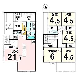 | 間取り | 4LDK 間取り内訳:リビングダイニングキッチン 16帖(1階)・洋室 4.5帖(1階)・洋室 7.5帖(2階)・洋室 5.9帖(2階)・洋室 4.5帖(2階) |