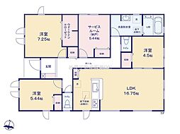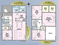 | 間取り | 4LDK 間取り内訳:リビングダイニングキッチン 16帖(1階)・洋室 4.5帖(1階)・洋室 8帖(2階)・洋室 6帖(2階)・洋室 6帖(2階)・洋室 5.1帖(2階) |