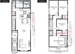 間取り内訳:リビングダイニングキッチン 21.7帖(1階)・洋室 8.5帖(2階)・洋室 6帖(2階)・洋室 5.2帖(2階)・洋室 4.6帖(2階)