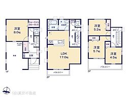 間取り内訳:リビングダイニングキッチン 17帖(2階)・洋室 8帖(1階)・洋室 5.7帖(3階)・洋室 5.2帖(3階)・洋室 4.5帖(3階)
