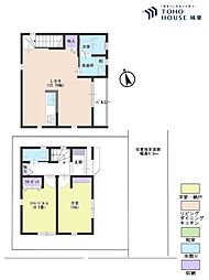 | 間取り | 2LDK 間取り内訳:洋室 5帖(1階)・収納 4.5帖(1階)・リビングダイニングキッチン 12.7帖(2階) |
