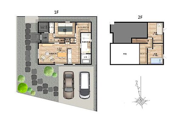 • 「建築条件付き土地」の「建物プラン例」は、土地購入者の設計プランの一例であり、プランの採用可否は任意です。