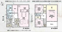 | 間取り | 3SLDK 間取り内訳:リビングダイニングキッチン 15.2帖(1階)・収納 3帖(1階)・洋室 8帖(2階)・洋室 4.5帖(2階)x2 |