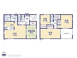 間取り内訳:リビングダイニングキッチン 15帖(1階)・和室 6畳(1階)・洋室 7.5帖(2階)・洋室 9帖(2階)・洋室 4.5帖(2階)