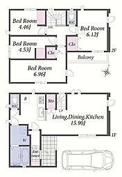 | 間取り | 3LDK 間取り内訳:リビングダイニングキッチン 16.6帖(1階)・洋室 11.9帖(1階)・洋室 5帖(2階)・洋室 4.8帖(2階) |