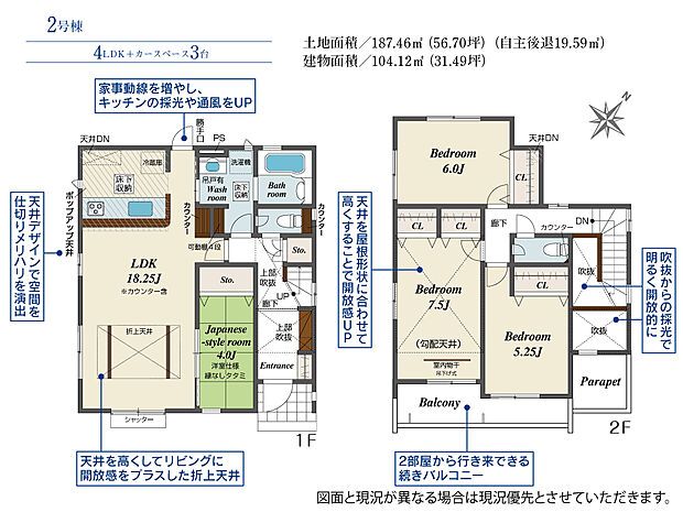土地面積 187.46m2(約56.70坪)~195.18m2(約59.04坪)