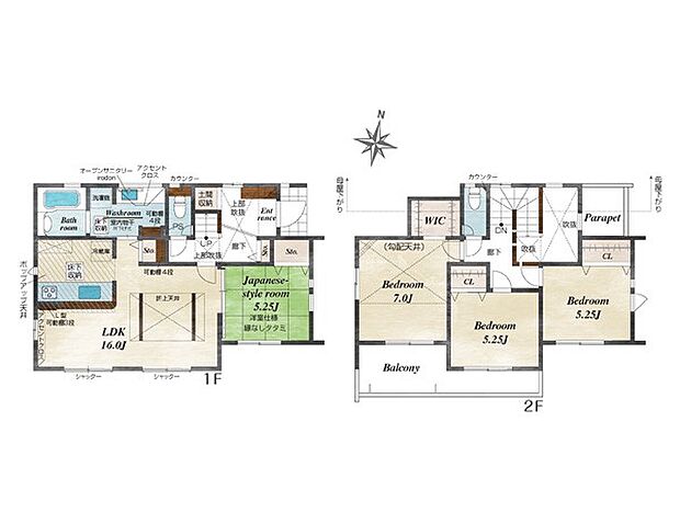 • 「建築条件付き土地」の「建物プラン例」は、土地購入者の設計プランの一例であり、プランの採用可否は任意です。