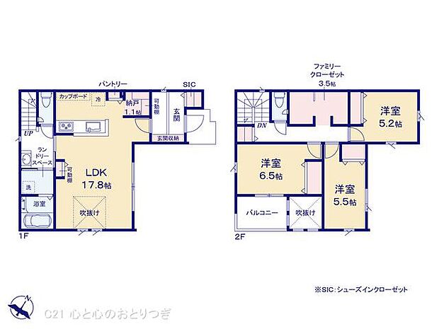 | 間取り | 3SLDK 間取り内訳:リビングダイニングキッチン 17.8帖(1階) |