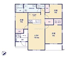 | 間取り | 3LDK(WIC、SIC) 間取り内訳:リビングダイニングキッチン 18.5帖・洋室 9帖・洋室 6帖・洋室 6帖 |