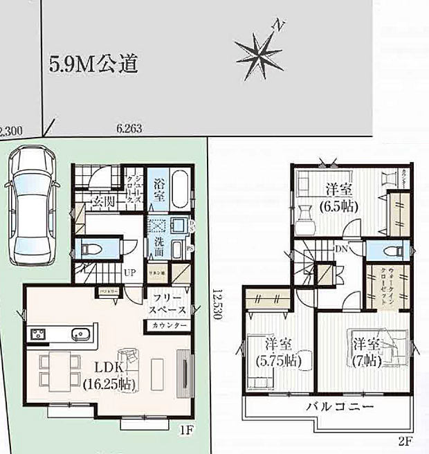 • 「建築条件付き土地」の「建物プラン例」は、土地購入者の設計プランの一例であり、プランの採用可否は任意です。