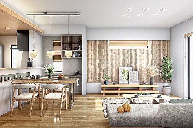 • 【【ワイドリビング】】家族みんながのびのび過ごせるワイドリビング。大きいソファやテーブルを配置しても十分な広さが保てるので、開放的な暮らしを愉しむことができます。※画像はイメージです。