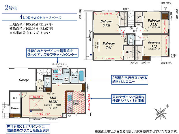 97.70m2(約29.55坪)~108.06m2(約32.68坪) |