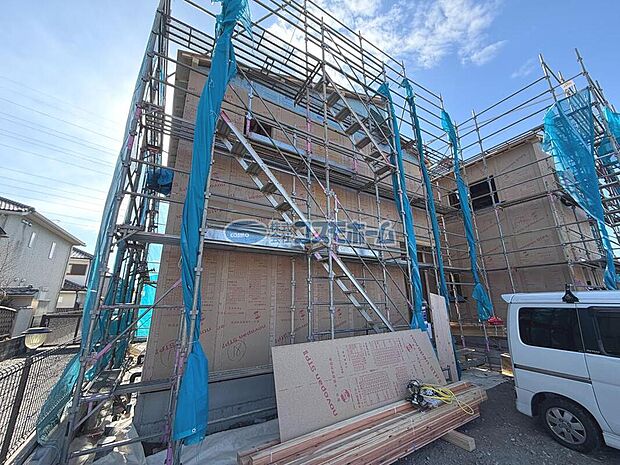 • 【現地外観写真】建築中はなかなかイメージがつきづらいですね!完成まで資料等でご案内したり、住宅ローン計画等、お気軽にご相談下さい(^^♪