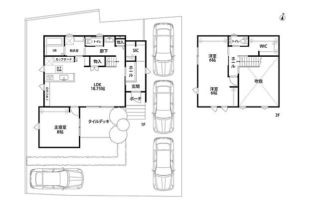 • 【駐車スペース】駐車スペースは、広々5台分。お子様の成長や来客にも対応できます。