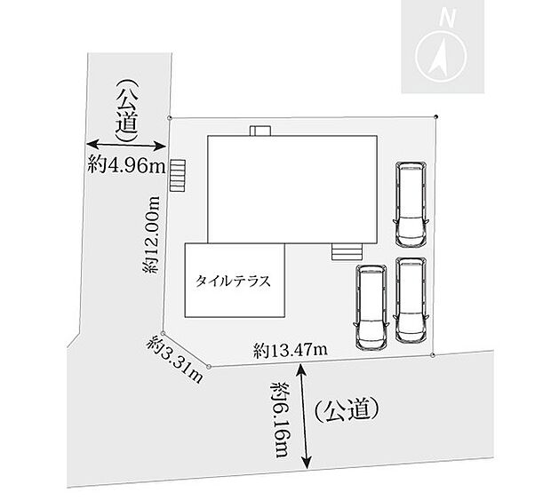 • 【現地外観写真】■駐車スペースも庭も!65坪以上の敷地で自由設計