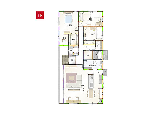 • 家族が集まるリビングは広々30帖! ご家族が自然に集まれる空間を考えました。大切なお家時間も自然に演出。※施工事例です。実物とは異なります。