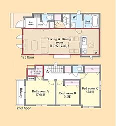 • 「建築条件付き土地」の「建物プラン例」は、土地購入者の設計プランの一例であり、プランの採用可否は任意です。