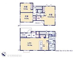 間取り内訳:リビングダイニングキッチン 18.9帖(1階)・洋室 6.8帖(1階)・洋室 6.3帖(2階)・洋室 5.2帖(2階)・洋室 5.2帖(2階)