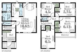 | 間取り | 4LDK 間取り内訳:リビングダイニングキッチン 15帖(1階)・洋室 5帖(1階)・洋室 7.5帖(2階)・洋室 6帖(2階)・洋室 5.6帖(2階) |