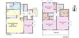間取り内訳:リビングダイニングキッチン 16帖(1階)・洋室 5.2帖(1階)・洋室 7.5帖(2階)・洋室 6帖(2階)・洋室 5.2帖(2階)