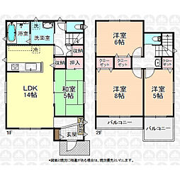 | 間取り | 4LDK 間取り内訳:リビングダイニングキッチン 15.2帖(1階)・洋室 4.5帖(1階)・洋室 4.5帖(2階)・洋室 5.5帖(2階)・洋室 6.1帖(2階) |
