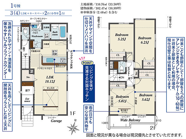 土地面積 110.76m2(約33.50坪)~137.12m2(約41.47坪)