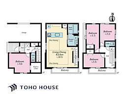 • 「建築条件付き土地」の「建物プラン例」は、土地購入者の設計プランの一例であり、プランの採用可否は任意です。