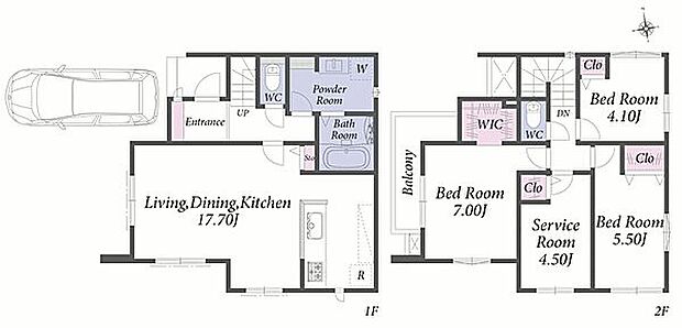 LDK17畳以上。収納に便利なウォークインクローゼット付の新築分譲住宅。
