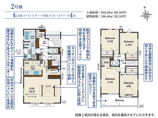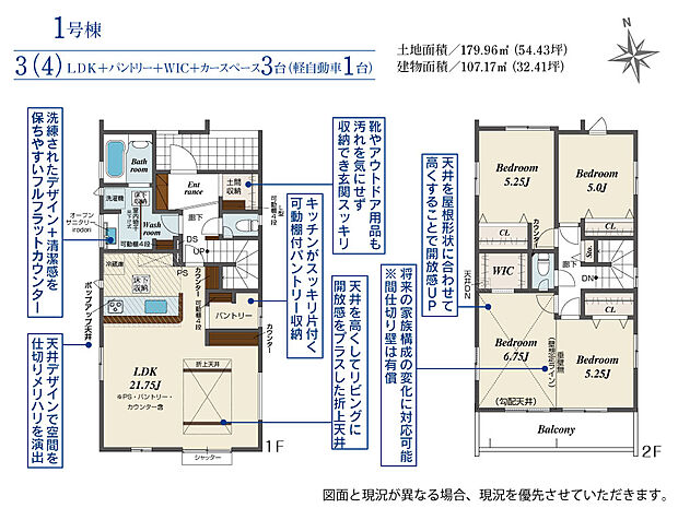 | 建物面積 | 106.40m2(約32.18坪)~107.17m2(約32.41坪) | ||