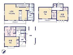 | 間取り | 3LDK 間取り内訳:洋室 6.1帖(1階)・収納 5.2帖(1階)・リビングダイニングキッチン 17.2帖(2階)・洋室 7.3帖(3階) |