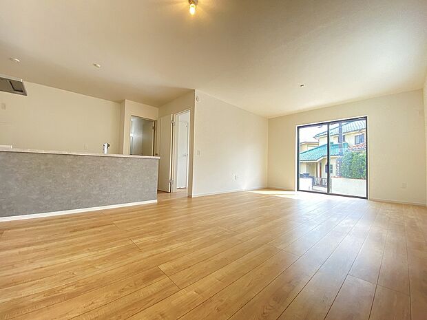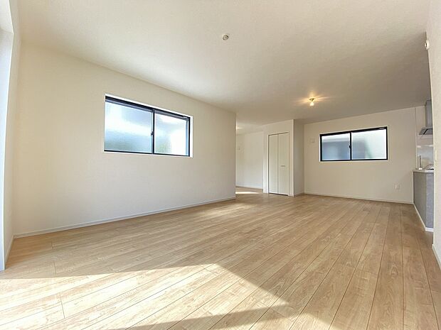 開放感溢れるLDKは23帖以上 足元から暖かい床暖房も備えています。南接道につき陽当たり良好