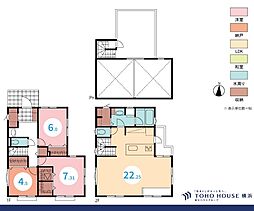 | 間取り | 2SLDK 間取り内訳:洋室 7.3帖(1階)・洋室 6帖(1階)・収納 4.5帖(1階)・リビングダイニングキッチン 20帖(2階) |