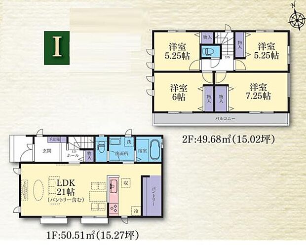 | 間取り | 4LDK 間取り内訳:リビングダイニングキッチン 21帖(1階)・洋室 7.2帖(2階)・洋室 6帖(2階)・洋室 5.2帖(2階)・洋室 5.2帖(2階) |