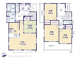 | 間取り | 4LDK 間取り内訳:リビングダイニングキッチン 17帖(1階)・洋室 5.2帖(1階)・洋室 5.2帖(2階)・洋室 10.5帖(2階)・洋室 5.2帖(2階) |