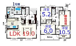 | 間取り | 4LDK 間取り内訳:リビングダイニングキッチン 22.9帖(1階)・洋室 8.1帖(2階)・洋室 5.2帖(2階)・洋室 5.2帖(2階)・洋室 4.5帖(2階) |