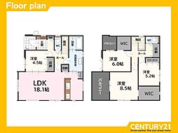 間取り内訳:洋室 5.6帖(1階)・リビングダイニングキッチン 17.6帖(2階)・洋室 7帖(3階)・洋室 5帖(3階)・収納 4.3帖(3階)
