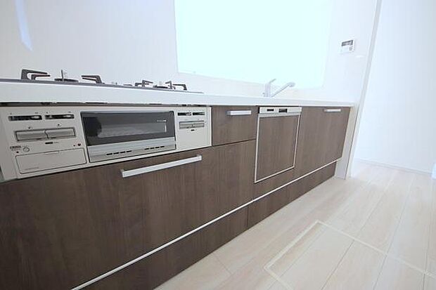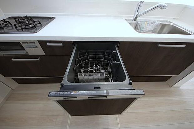 開放感のある角地区画。車2台駐車可能です。キッチンには忙しい家事を助ける食洗器付き。