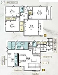 | 間取り | 4LDK 間取り内訳:リビングダイニングキッチン 16帖(1階)・和室 4.5畳(1階)・洋室 7帖(2階)・洋室 4.5帖(2階)・洋室 6帖(2階) |