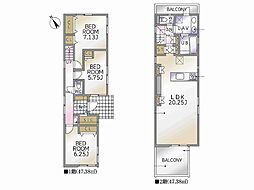 | 間取り | 4LDK 間取り内訳:リビングダイニングキッチン 23.7帖(1階)・洋室 8.5帖(2階)・洋室 5.2帖(2階)・洋室 5.2帖(2階)・洋室 4.9帖(2階) |
