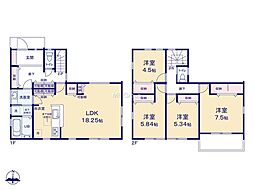 間取り内訳:リビングダイニングキッチン 14.6帖(1階)・洋室 6.1帖(2階)・洋室 4.5帖(2階)・洋室 4.1帖(2階)
