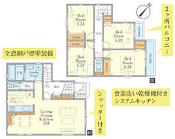前道6m以上、平坦地に立地です。南向き、全室2面採光、通風良好、南面バルコニー付です。全居室フローリングです。全居室収納、床下収納、ウォークインクローゼット付でスッキリ暮らせます。