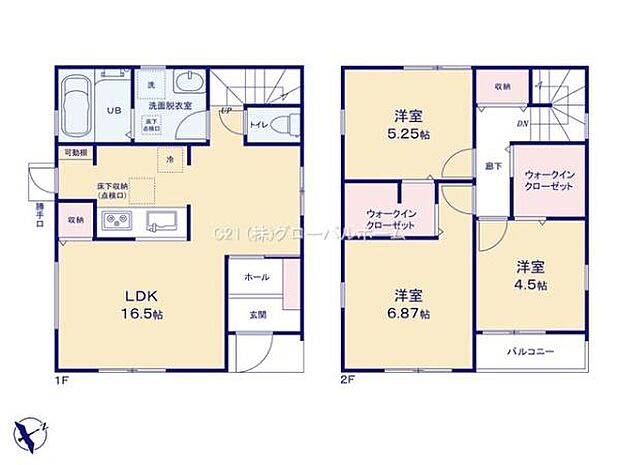 | 間取り | 3LDK 間取り内訳:リビングダイニングキッチン 16.5帖(1階)・洋室 5.2帖(2階)・洋室 6.8帖(2階)・洋室 4.5帖(2階) |