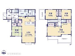 | 間取り | 4LDK 間取り内訳:リビングダイニングキッチン 23.1帖(1階)・洋室 3.4帖(2階)・洋室 5.2帖(2階)・洋室 5.3帖(2階)・洋室 7.3帖(2階) |