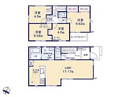 間取り内訳:洋室 6帖(2階)・リビングダイニングキッチン 17.5帖(1階)・洋室 5.2帖(1階)・洋室 6.2帖(2階)・洋室 7帖(2階)