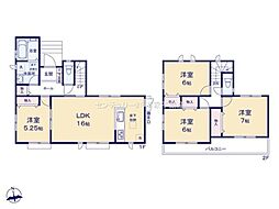 | 間取り | 3LDK 間取り内訳:リビングダイニングキッチン 17.2帖(1階)・洋室 7.5帖(2階)・洋室 7帖(2階)・洋室 6.5帖(2階) |